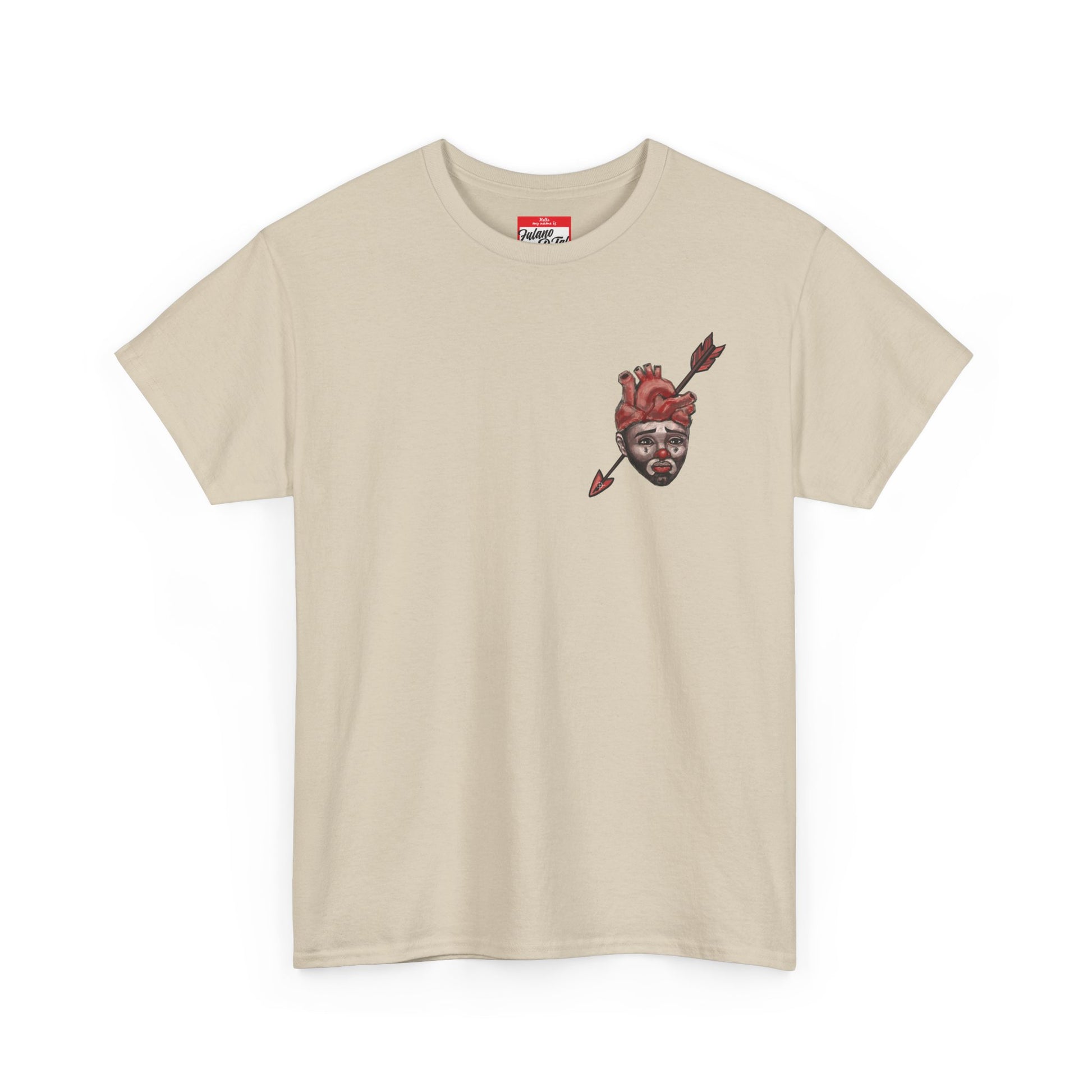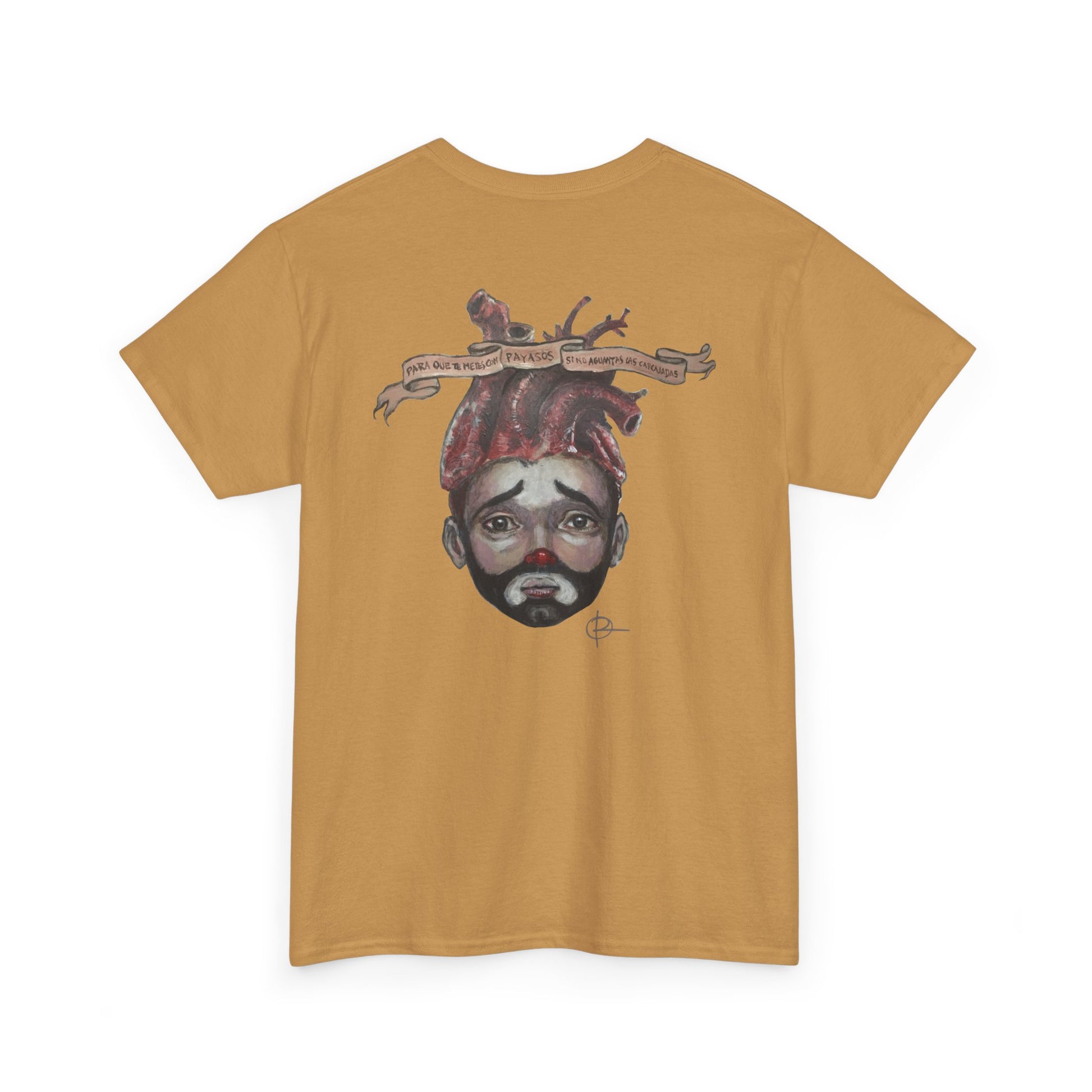 Payaso Triste Cotton Tee - Heart Clown on back has caption "Para que te metes con payasos, si no aguantas las carcajadas".