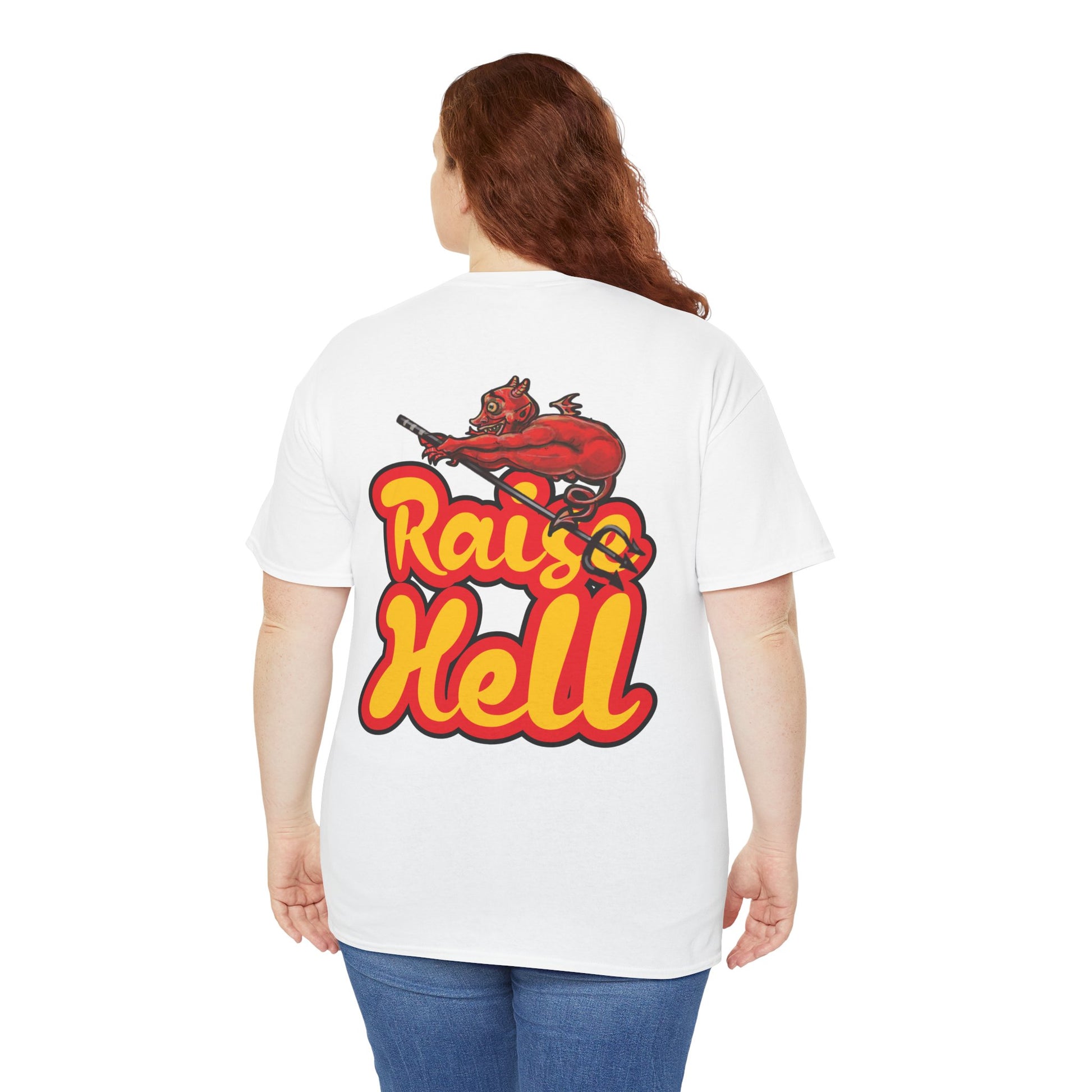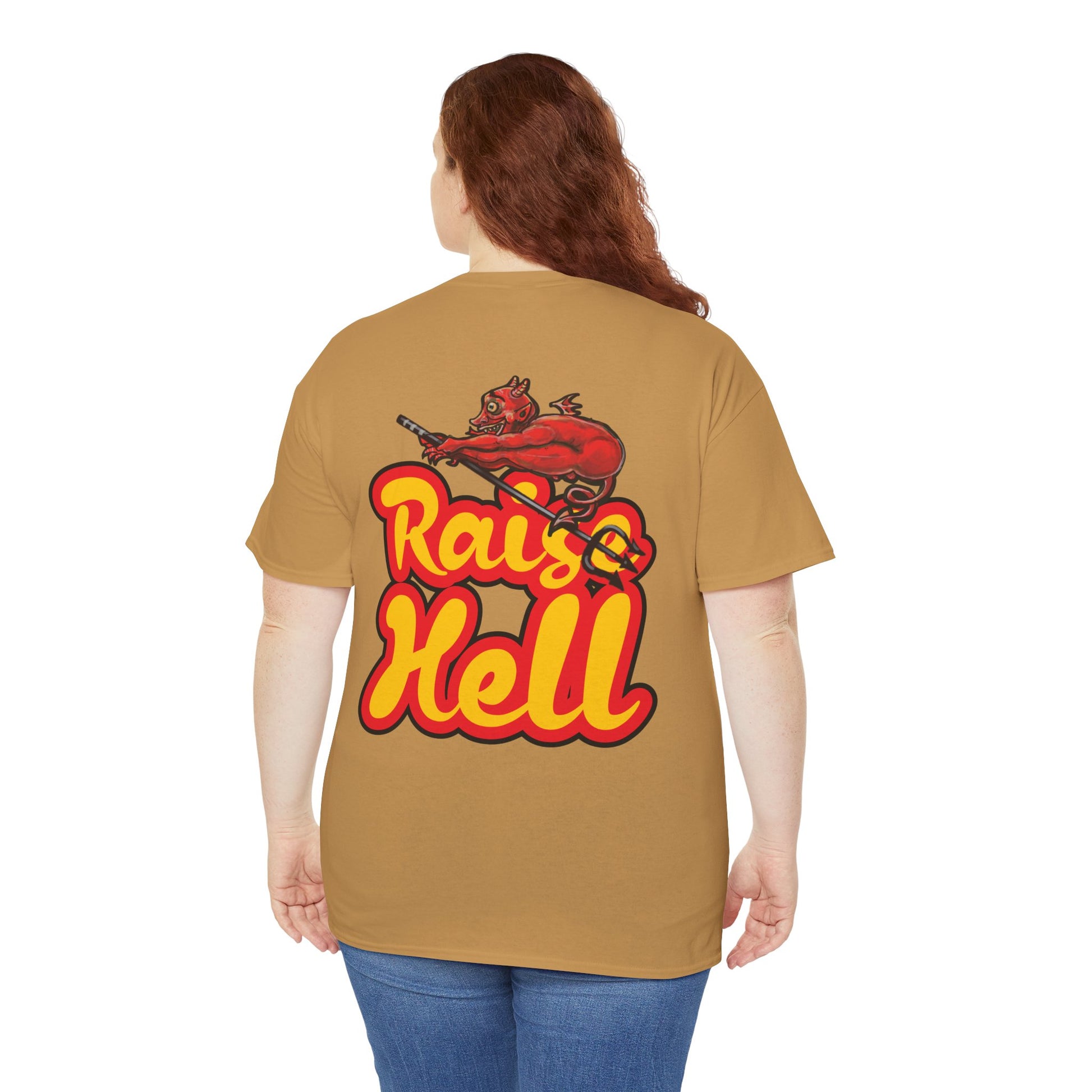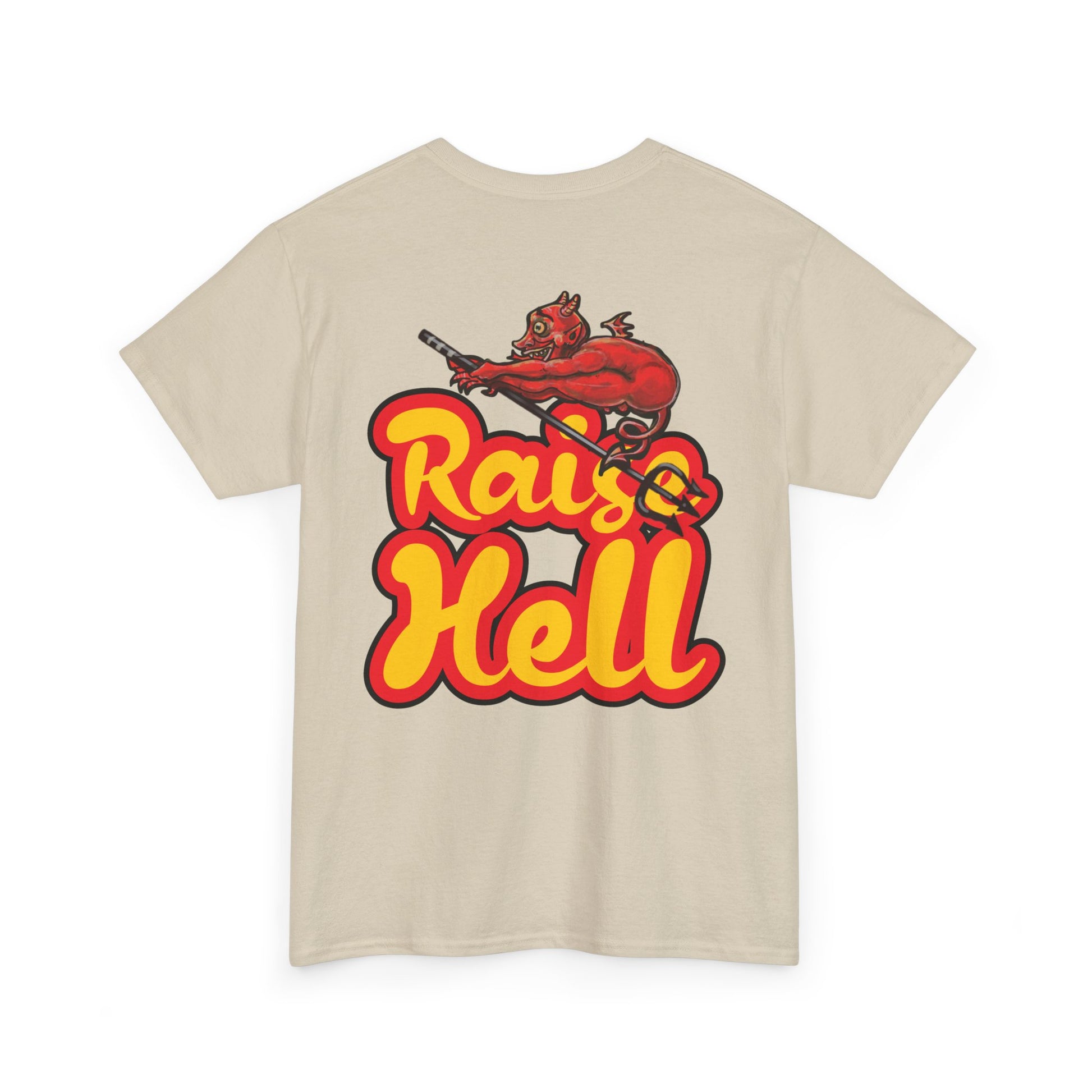 Double Sided Raise Hell Graphic Treatment on Back / Toe Touch Diablito Hero image on front Cotton Tee